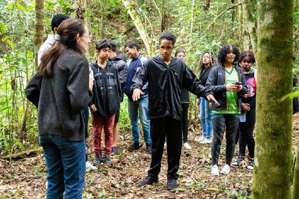 écies nativas da flora local. Acompanhados dos engenheiros da SMSA, Cristiane Roppa e Igor Araújo, os estudantes tiveram a oportunidade de conhecer a biodiversidade da Mata Atlântica.