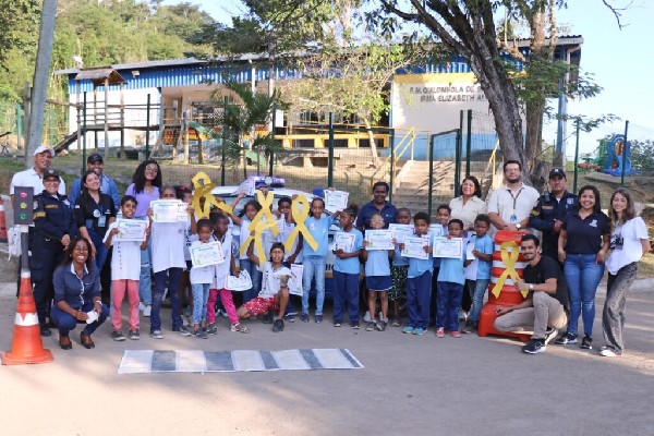 Por outro lado, os alunos da escola em Santana receberam uma simulação de uma via no trânsito e aprenderam sobre a importância das sinalizações, como semáforos e faixas de pedestre.