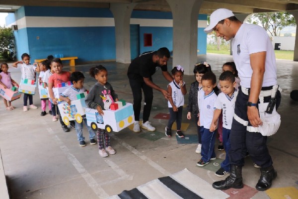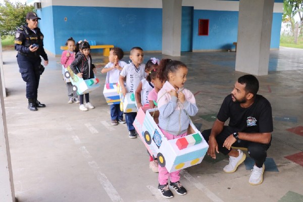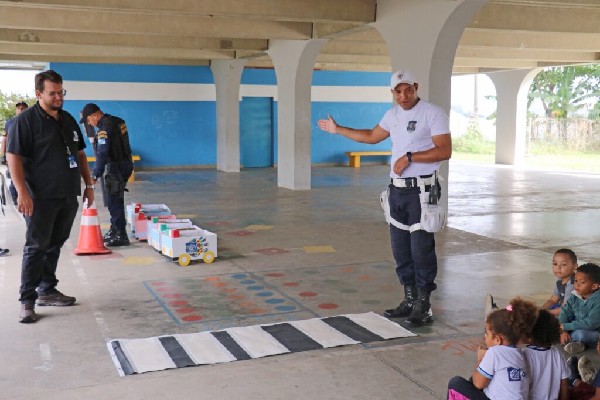 ção de uma via de trânsito. Na ocasião, a equipe deu orientações sobre a sinalização no trânsito, como faixas de pedestres e semáforos, e ainda explicou sobre a importância deles para a segurança de motoristas e pedestres. O secretário de Ordem Urbana, Mateus Ponciano, acompanhou a atividade.