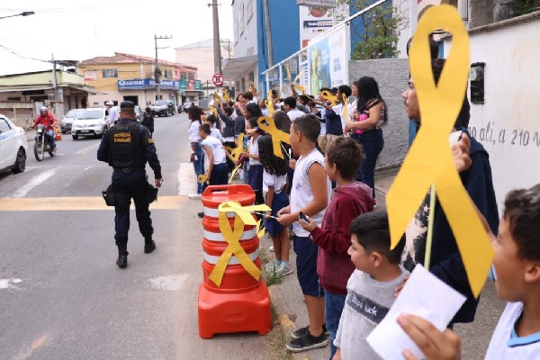 á os alunos da escola Profª Julieta Pereira Sampaio tiveram uma aula prática no centro da cidade. Na ação, a equipe, juntamente com os estudantes, entregaram panfletos educativos para os motoristas que passavam pelo local. O intuito foi trabalhar a segurança no trânsito e conscientizar a população sobre a proposta da campanha. A ação contou com o apoio da Guarda Civil Municipal (GCM).