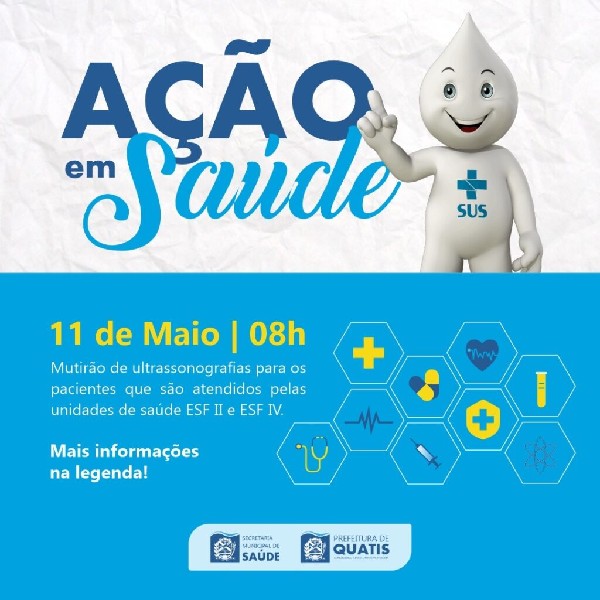 O mutirão de ultrassonografias segue o calendário dos serviços e ações em saúde, programados para acontecer durante todo o mês de maio. Esta é uma iniciativa da Administração Municipal, com o objetivo de oferecer mais assistência em saúde para a população, por meio de vacinação, atendimentos médicos, entre outros serviços. A previsão é que as ações aconteçam aos sábados. Toda a programação é divulgada nos canais oficiais da Prefeitura.