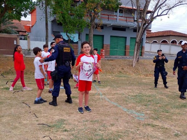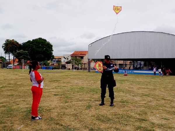 ção proibida e perigosa destes materiais. Na ocasião, os agentes explicaram sobre a importância de utilizar equipamentos legalizados e deram dicas e orientações para garantir proteção ao soltar pipas. Ao final da atividade, os adolescentes ainda participaram de uma dinâmica sobre o tema.