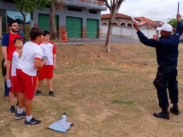 Alunos do Colégio Plano A participam de ação da Patrulha Escolar de Quatis sobre uso do cerol e da linha chilena