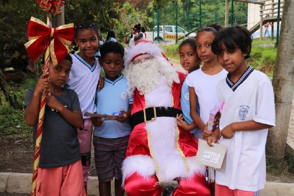 Pelo terceiro ano consecutivo, a comunidade Quilombola de Santana recebeu a visita do Papai Noel. Nesta semana, o bom velhinho foi até a Escola Municipal Quilombola de Santana Irmã Elizabeth Alves e fez a alegria dos alunos e dos moradores da localidade.Na ocasião, houve entrega de presentes para as crianças, que contou com diversos brinquedos para garantir a diversão dos pequenos. A visita do Noel também rendeu muitas gostosuras com distribuição de pipoca e refrigerante para toda a família.A chegada do Noel à comunidade é uma iniciativa da Prefeitura de Quatis, por meio de um conjunto entre as secretarias municipais de Assistência Social e Educação. A ocasião contou com a presença do prefeito Aluísio d’Elias e do secretário de Assistência Social, Hélio Ricardo.