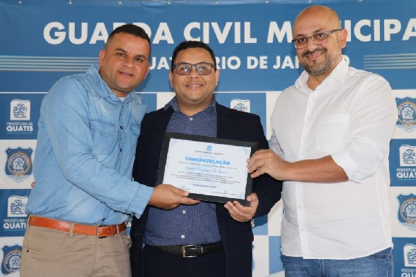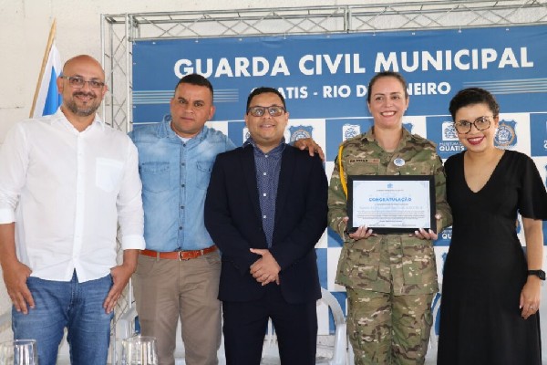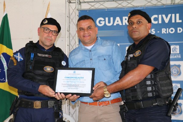 ça no evento o prefeito Aluísio d’Elias, o secretário de Ordem Urbana, Mateus Ponciano, e os vereadores da Câmara Municipal de Quatis, André Jabuti e Fernando Maninho. A cerimônia contou ainda com a participação do presidente da OAB de Barra Mansa, Aloizio Perez, do secretário de Ordem Pública de Volta Redonda, Luiz Henrique Barbosa, do procurador da Fazenda Pública de Resende, Carlos Felipe Bruno, além de comandantes e representantes da Guarda Civil dos municípios de Porto Real, Resende, Niterói e demais autoridades e representantes de outros municípios, como da Patrulha Maria da Penha de Quissamã. Quem também esteve presente na cerimônia foi a família de João Evangelista Eurico, agente da GCM de Quatis que faleceu em março deste ano e que foi homenageado durante a cerimônia.