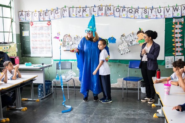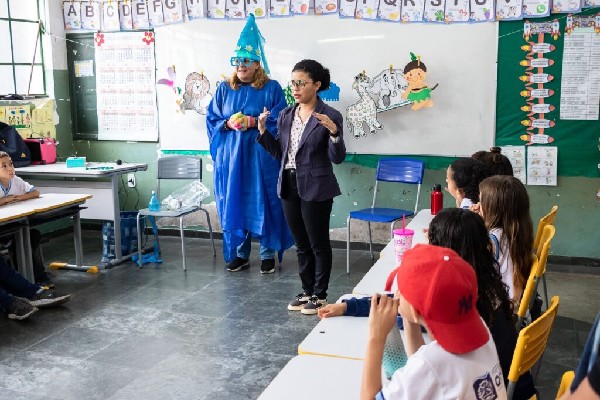A convite da equipe, a professora e contadora de história, Clara Inês Xavier, apresentou a fábula "A Fada D'Água" para os alunos do 4º ano do Ensino Fundamental. A história aborda temas de conscientização sobre o consumo de água, descarte de resíduos, desmatamento e a importância da preservação do meio ambiente. A ocasião também proporcionou aos estudantes um bate-papo divertido sobre o tema.