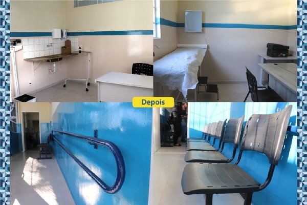 ‘Antes x Depois’ do ESF II, como era e como ficou após a sua revitalização. O local recebeu novas instalações de estrutura elétrica, troca de pisos, acessibilidade, salas e ambientes equipados e climatizados, além de uma nova pintura que deixou o lugar mais lindo e confortável para atender os usuários.