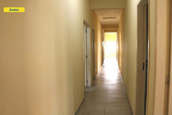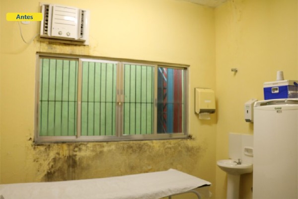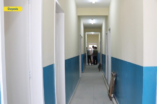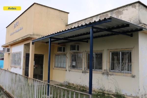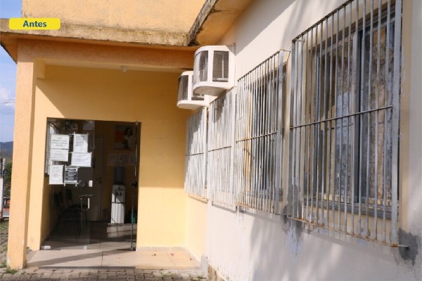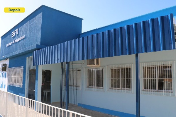 ‘Antes x Depois’ do ESF III, como era e como ficou após a sua revitalização. O local recebeu uma nova pintura, cobertura da área externa, instalação de vários condicionadores de ar, reestruturação elétrica, troca das luminárias e melhor acessibilidade para os pacientes e servidores.
