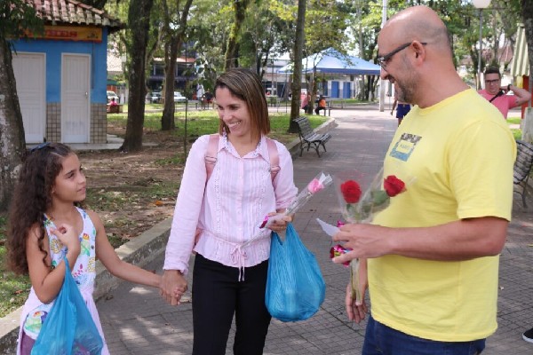 ão, o prefeito Aluísio d’Elias e toda a equipe composta por secretários municipais e agentes da PM realizaram a entrega de rosas, cartões e bombons para as mamães que passavam pelo local, como um ato de homenagem e lembrança a esta data tão especial.