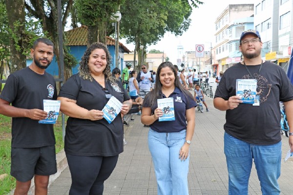 ém realizou uma ação de conscientização sobre pedalar de forma segura. O intuito foi alertar os ciclistas e conscientizar sobre a importância do uso de equipamentos adequados para o ciclismo e outras orientações.