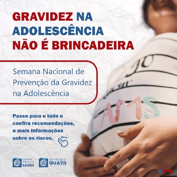 Apesar de ser um assunto polêmico e ainda visto como um tabu na sociedade, a educação sexual é um tema que precisa ser debatido e levado à sério. Pensando nisso, a Prefeitura de Quatis, através da Secretaria Municipal de Saúde (SMS), vem conscientizar sobre a prevenção da gravidez na adolescência, em celebração à Semana Nacional de Prevenção da Gravidez na Adolescência.