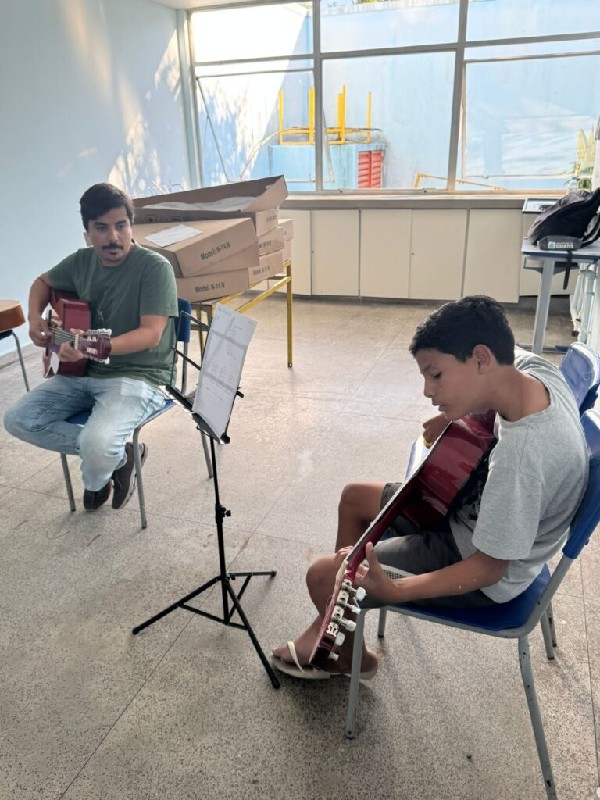 A cultura musical chegou nas escolas municipais de Quatis. O “Orquestra de Violões” é o novo projeto do governo municipal que vem para estimular o acesso de estudantes à educação musical. A nova proposta teve seu início, recentemente, no CIEP 492 Municipalizado Marciana Machado de Elias, no bairro Nossa Senhora do Rosário, onde os alunos tiveram o primeiro contato com o projeto educacional. Segundo a Secretaria Municipal de Educação (SME), o programa atenderá os alunos da Rede Municipal de Ensino e contribuirá para o fortalecimento e o aprendizado de instrumentos musicais, através de aulas de violão.A iniciativa da prefeitura ainda visa o desenvolvimento da concentração, disciplina e da criatividade do estudante. O foco principal, de acordo com a pasta pedagógica, é estimular atividades que possibilitem a valorização da música como forma de expressão artística dentro das unidades educacionais. A novidade também chega para impulsionar a comunidade escolar na garantia de atividades do ponto de vista cultural e pedagógico.“Mais do que ensinar a tocar um instrumento, o ‘Orquestra de Violões’ é uma iniciativa que transforma, inspira e fortalece o vínculo entre a escola, cultura e sociedade. Um projeto que nasce para fazer diferença na vida dos nossos alunos, abrindo caminhos para novos sonhos e possibilidades.” – destaca a equipe da Secretaria de Educação de Quatis.