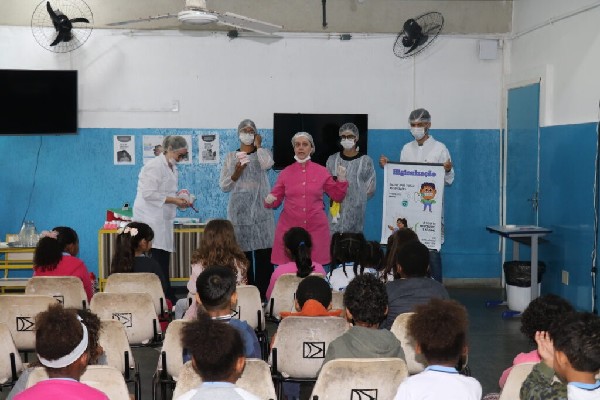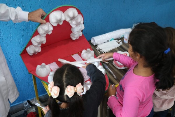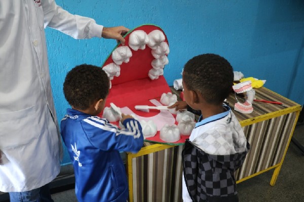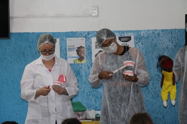 úde (SMS), a ação contou com orientações de escovação e sobre saúde bucal, levando informação e cuidado de forma prática, acessível e lúdica. O objetivo foi reforçar e qualificar o cuidado odontológico em ambiente escolar, alinhando promoção e recuperação da Saúde Bucal e Prevenção de Doenças.