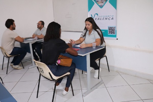 A primeira etapa do processo seletivo foi direcionado ao cadastramento, análise de currículos e entrevista presencial com a equipe do Departamento de Recursos Humanos da Litografia Valença. Foram 10 vagas para Auxiliar de Produção, para pessoas de ambos os sexos, e 10 vagas para Ajudante de Produção, destinadas apenas para pessoas do gênero masculino. Os cargos também foram destinados à PCD's, visando a inclusão social e ampliação de oferta de trabalho para todos os públicos.