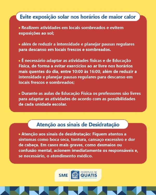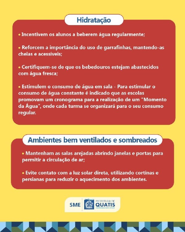 údo mega importante para ser seguido nesta semana de altas temperaturas no município, com o objetivo de garantir o bem-estar de alunos, professores e de toda a comunidade escolar.