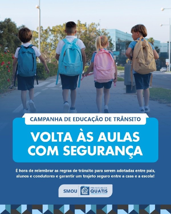 Com a volta às aulas, é hora de relembrar as regras de trânsito para serem adotadas entre pais, alunos e condutores e garantir um trajeto seguro entre a casa e a escola.Pensando nisso, a Prefeitura de Quatis separou algumas das principais dicas para cada agente no trânsito, a fim de garantir maior segurança na cidade neste período de retorno escolar:Aos pedestres:Use sempre a faixa de pedestre para atravessar;Olhe, ouça e espere antes de realizar a ação de mudança de via ou calçada;Mantenha-se visível;Aos motoristas:Reduza a velocidade perto das escolas;Respeite os limites de velocidade;Esteja atento aos pedestres e ciclistas;Aos alunos e seus pais e responsáveis:Sempre use a faixa de pedestre ao atravessar a rua em frente à escola;Antes de atravessar a rua, olhe para os lados, ouça sons e espere até que esteja seguro. (Para tal ação, é recomendado não usar fones de ouvidos para não interromper a audição);Evite brincadeiras próximo à via, isso pode ocasionar acidentes;Não cruze a rua sozinho: Se o aluno for menor de idade e se sentir inseguro ao atravessar a rua, aguarde e peça ajuda de um adulto ou de um agente de trânsito local;Esteja atento ao trânsito: Ao entrar e sair da escola, siga as instruções da Guarda Civil Municipal, monitores ou de professores;Vamos juntos garantir um trânsito mais seguro durante o novo ano letivo!