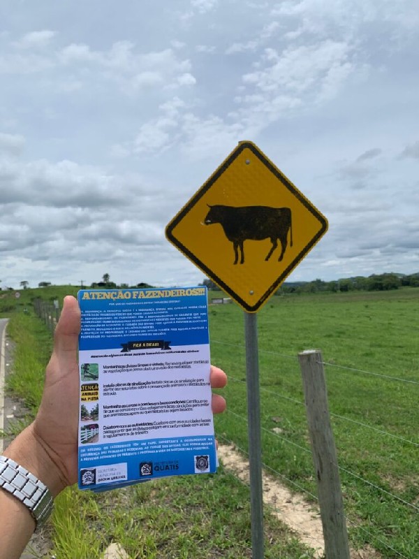 “Cuidado com Animais na Pista”, o objetivo foi orientar e alertar a comunidade da zona rural sobre os cuidados com acidentes envolvendo animais nas estradas vicinais. Segundo a SMOU, acidentes de trânsito envolvendo animais vêm sendo recorrentes no município, visto que a cidade é localizada em área de mata.