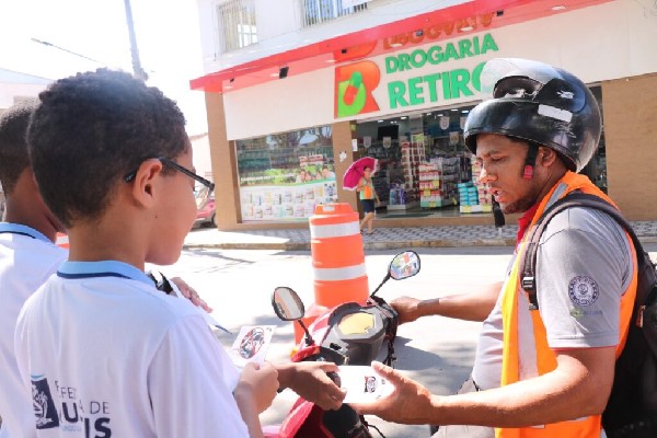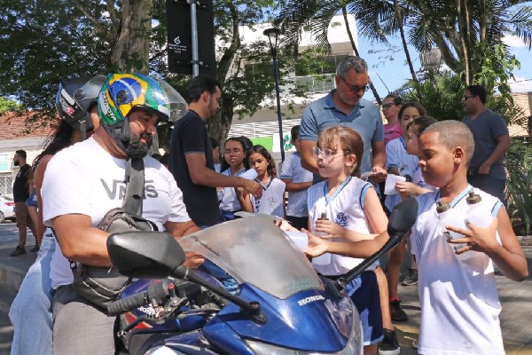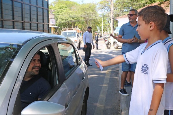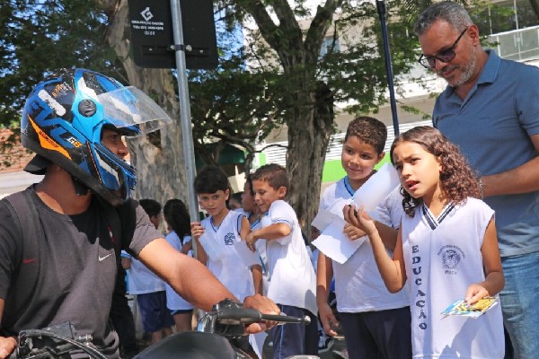 última sexta-feira (1º), os alunos do 3º ano do Ensino Fundamental da Escola Profª Julieta Pereira Sampaio, em Quatis, participaram de uma ação de educação no trânsito. A ação foi promovida pela Prefeitura e teve como tema o uso de celular no volante. De acordo com a Secretaria Municipal de Ordem Urbana (SMOU), o objetivo foi conscientizar os menores sobre os perigos e os cuidados com a utilização do aparelho ao dirigir. A atividade aconteceu na Praça dos Expedicionários, no centro da cidade. Na ocasião, os estudantes, acompanhados por agentes da Patrulha Escolar, entregaram panfletos educativos e orientaram motoristas a adotarem medidas de segurança no trânsito.