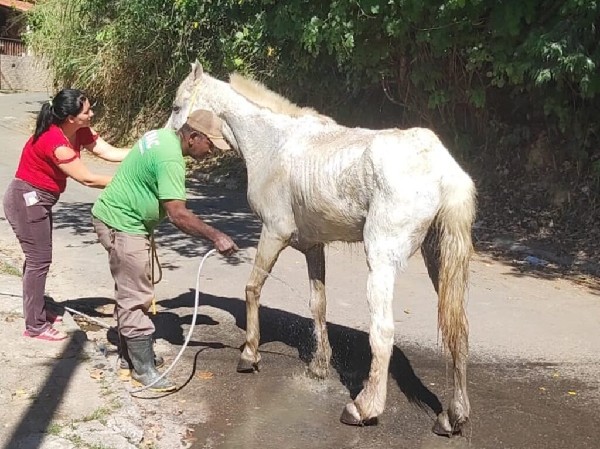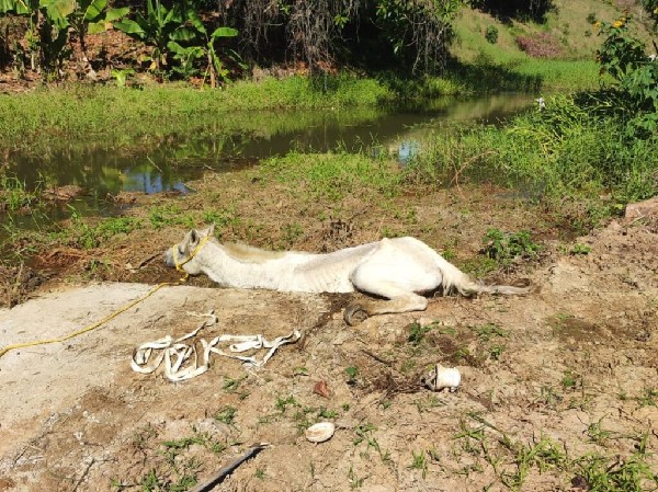 é o bairro e encontrou o equino. Segundo a VISA, ele apresentava indícios de maus tratos. Logo em seguida, a equipe da Prefeitura se mobilizou na tentativa de buscar equipamentos para realizar o recolhimento do animal. Foi quando que, ao retornarem para o local, perceberam uma movimentação de moradores na localidade, e descobriram que o animal havia sofrido uma queda e ficou preso em um pequeno buraco de areia, próximo à represa.