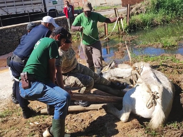 ção de salvamento foi realizada com um cavalo na última quarta-feira (12), em Quatis. O animal havia caído em um buraco próximo à represa do bairro Lava-Pés. Na terça-feira (11), agentes do Grupamento Ambiental, em conjunto com a equipe da Divisão de Vigilância Sanitária e Ambiental (VISA), foram acionados até o local, após relatos de um cavalo que aparentava estar “muito magro”. Ao chegarem na comunidade, o animal não foi encontrado.